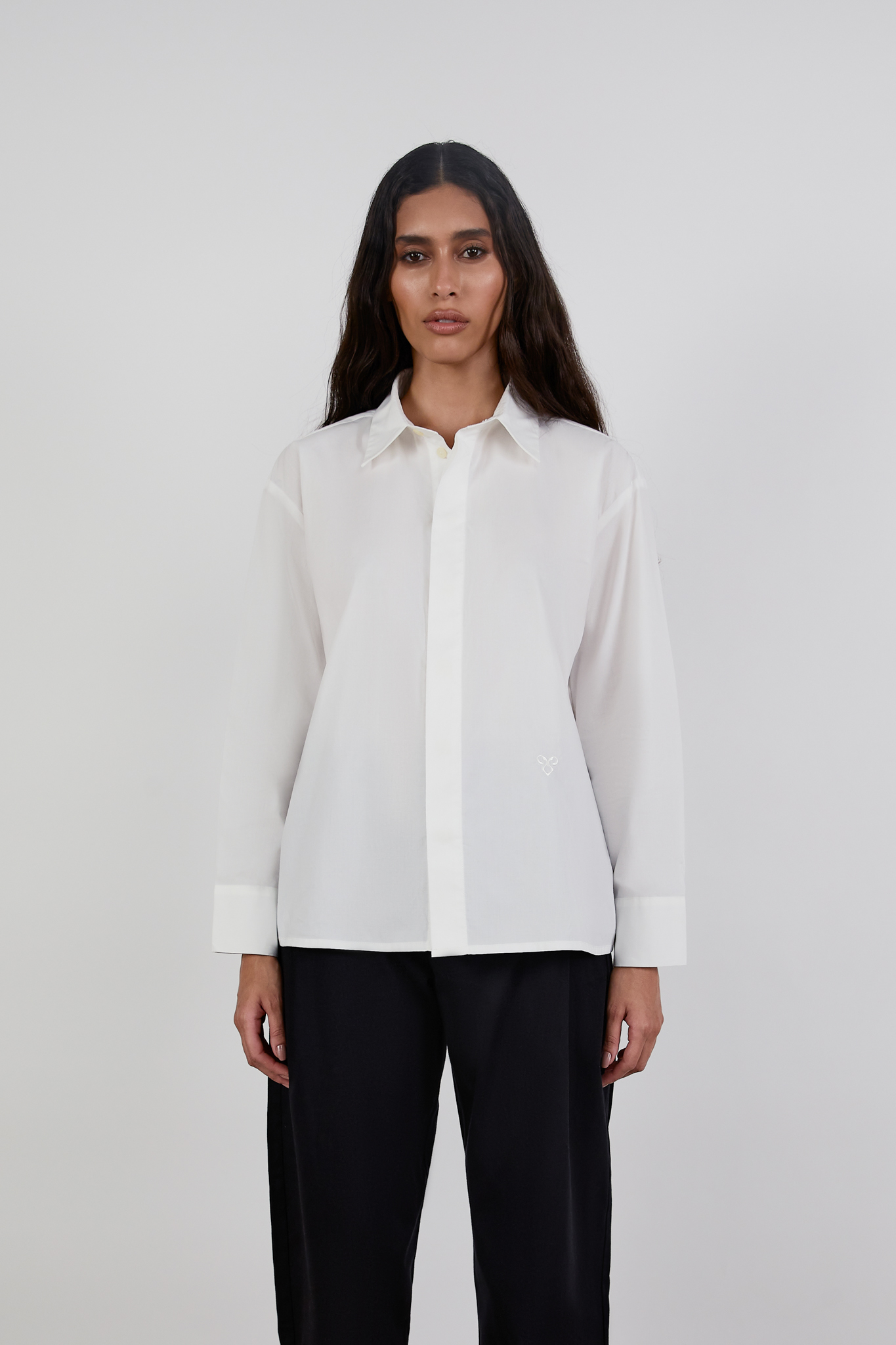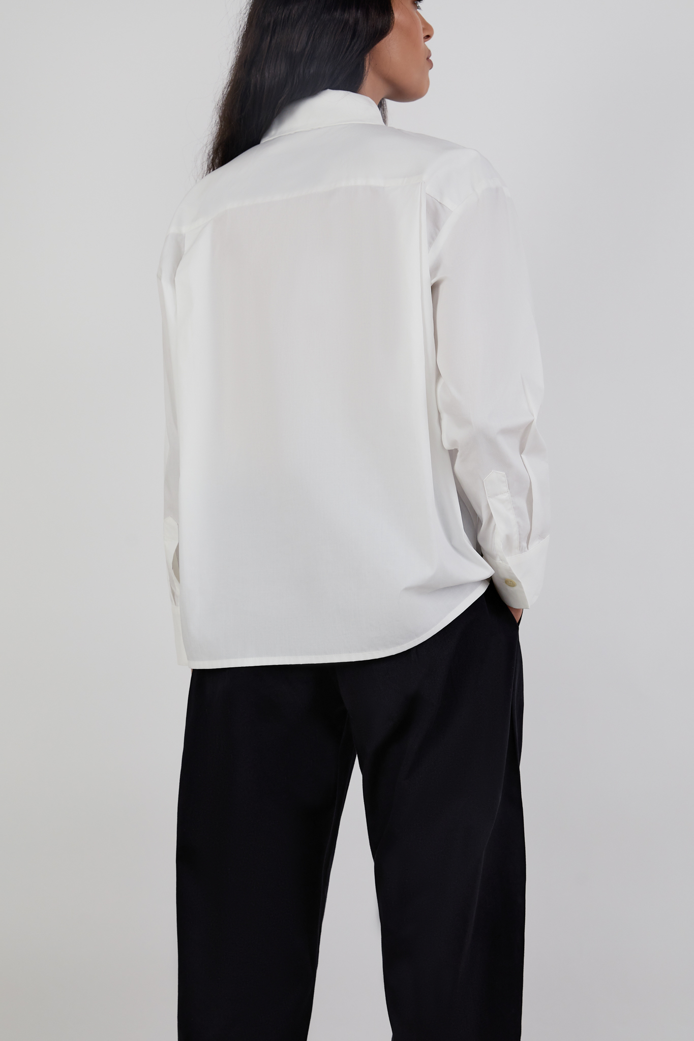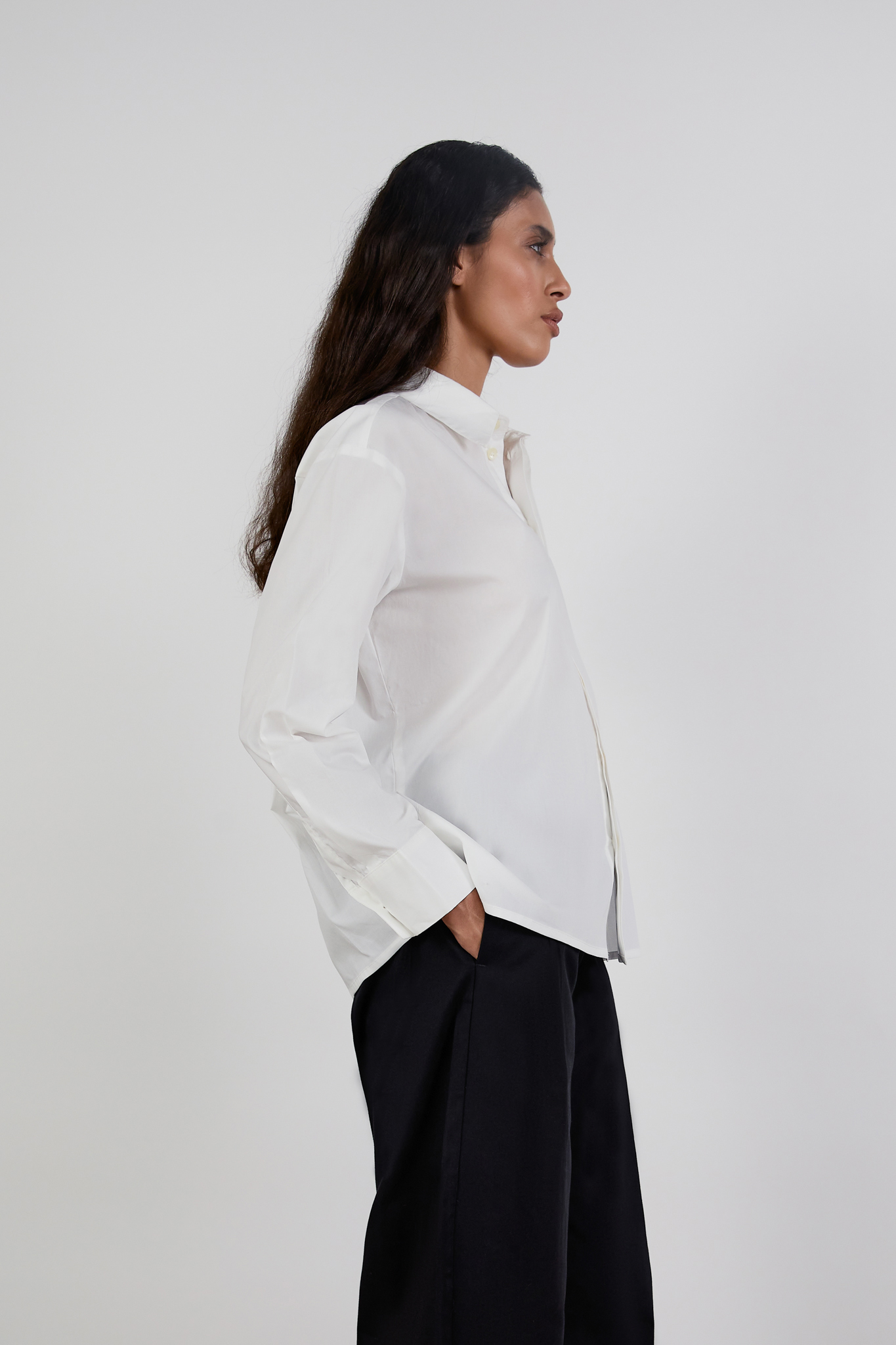 Designed with a relaxed, oversized silhouette. Cut from a lightweight cotton fabric that drapes with ease. With an understated logo detailing, a timeless staple for a modern wardrobe